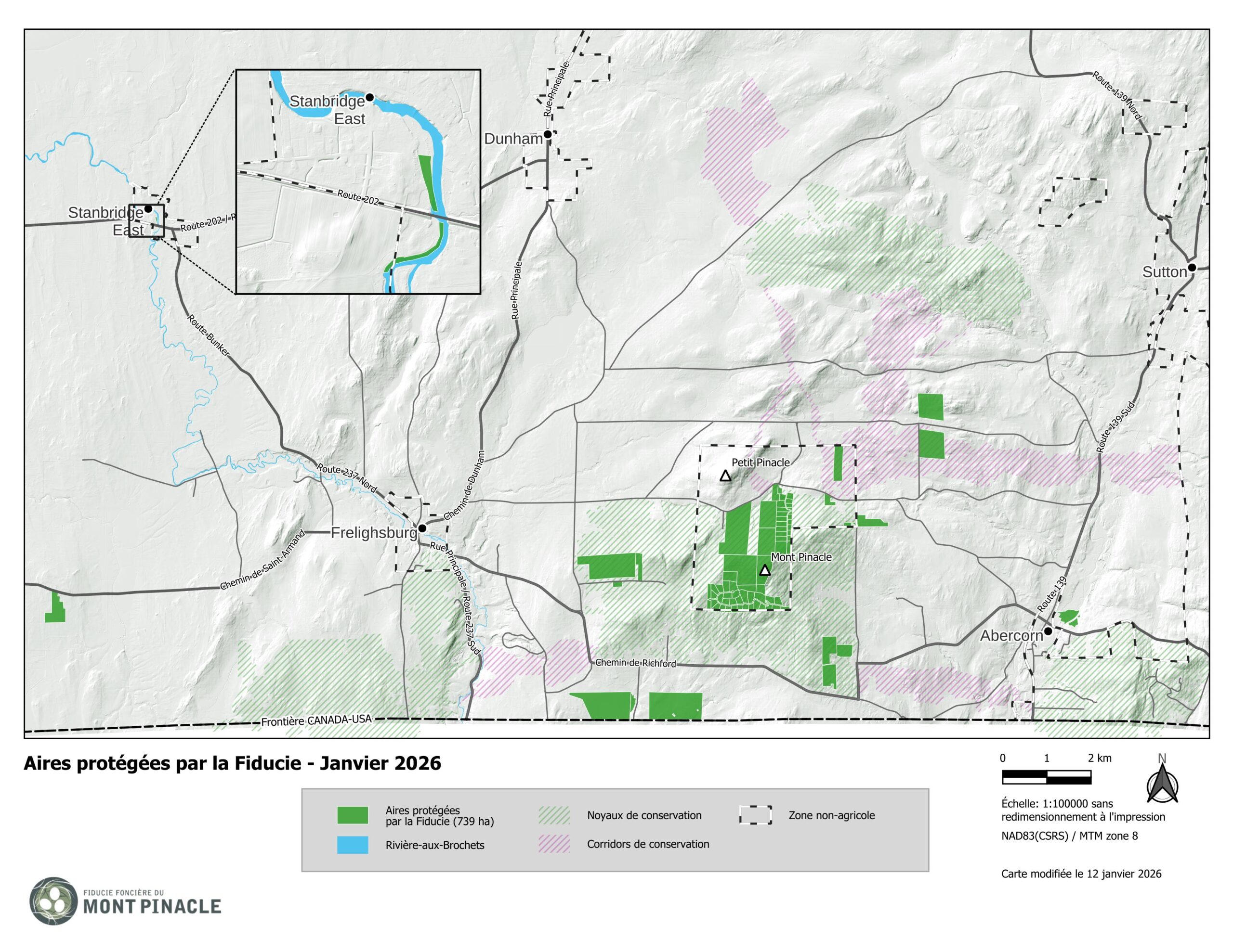 739 hectares (1 826 acres) de milieux naturels sont déjà protégés par la Fiducie foncière du mont Pinacle. Mais il reste encore beaucoup de travail à faire.
